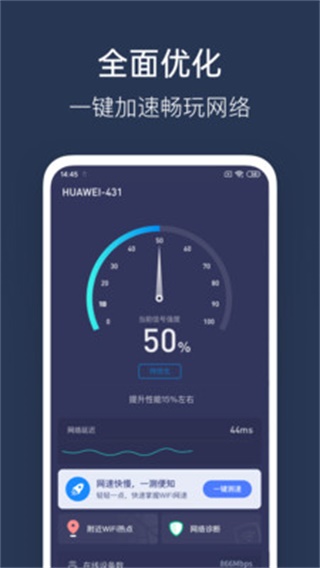 WiFi测速管家是WiFi测速管家是一个网速测试优化管理工具,这款软件可以帮助用户轻松的了解自己网络的性能情况哦,并且WiFi测速管家是WiFi测速管家是wifi信号增强器app上还有很多其他的功能等你来发现。