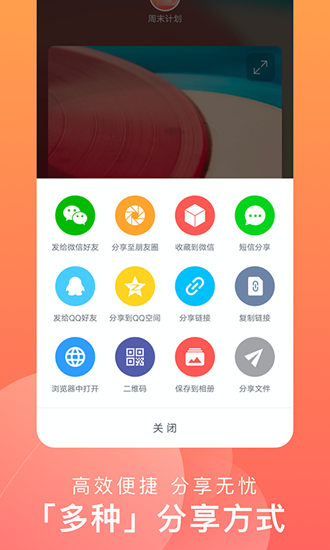 10、“分享”功能:当你需要分享到微信、QQ等社交媒体帐号后,就可以发送给朋友或群组浏览。