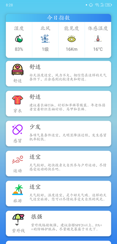 华美天气app是华美的天气软件,使用该软件能够帮助用户实时的了解未来天气预报情况。这里有超多的生活指数信息供用户进行参考查看!