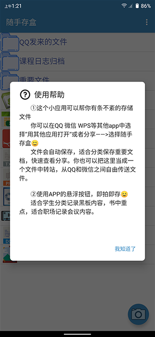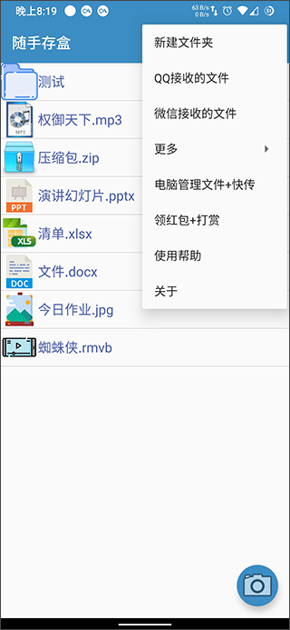 随手存盒一个文件储存在工具里面,这款软件能帮你将手机上的各类文件进行备份和存储到电脑中,还能直接在上面搜索自己想要的文件内容哦,让你随时可以打开查看。