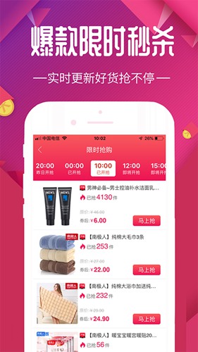 2、各类特惠专区实时更新推荐最新热卖商品一键搜索直达查找快速抢购。