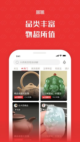 这里集合了多种藏品类别的商品展示内容,包括玉石珠串、紫砂陶瓷等等。