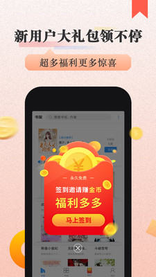 [签到天天送红包]每天限免书券,读书还得钱币;邀请好友一起看小说,有惊喜;