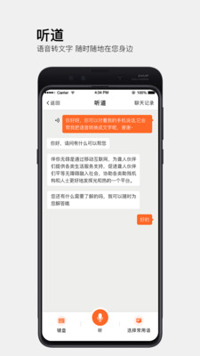 “伴你”是基于移动端开发的一款面向残疾人人群的生活服务类应用软件。它提供了多种功能和服务:实时互动交流、语音转文字等。该应用不仅提供高效便捷的对话环境,还通过智能识别技术将文字转换成流畅自然的文字表达方式。