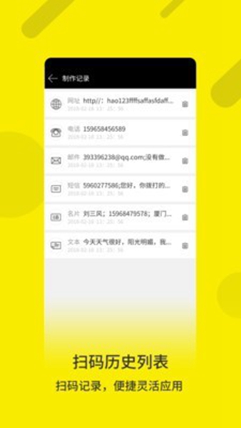 1、快速创建专属二维码:只需轻点几下即可轻松创建自己的专属二维码或条形码,支持文本、网址、联系人、短信、电话等等方式的一键式设计。