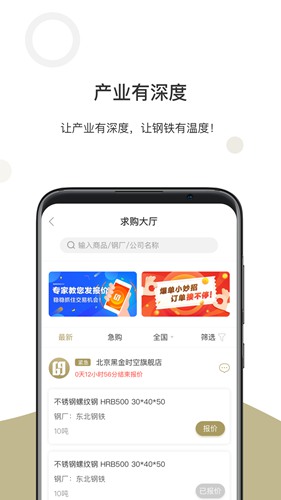 钢贸掌柜是钢铁往家版APP是一款钢材交易平台,为卖家的用户提供海量的钢材信息。软件上汇聚了众多的行业资源以及各种优质的钢品价格数据等你来查看了解!
