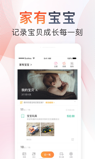 1、进入随手记APP首页中之后就可以看到已经存放了所有的消费情况以及统计内容供大家参考浏览吧。