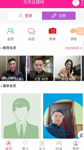 天天征婚能帮助单纯青年快速找到合适的相亲对象,这里有非常多的单身男女等你来寻找,你可以和他们聊聊,可以在这里查看自己的信息、图片资料等等。同时软件还可以进行视频聊天哦,喜欢的朋友快来下载吧!