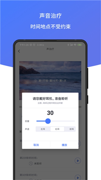 3、多种不同类别的耳鸣声疗效预设方案让你自由挑选收听助眠音乐;