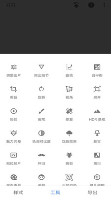 内置多个滤镜如胶片,电影,复古,HDR、LOMO、怀旧等,这些滤镜让你能根据自己的喜好定制合适的滤镜强度。