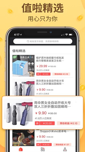 值啦精选在手机端购物软件,这里有丰富的商品供你挑选购买。价格优惠,品质有保障。超多优惠折扣等你来拿,喜欢的朋友快来下载吧!