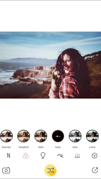 选择一键式复古模式,并将其保存为原始样式。此功能允许您将自拍照保存到图库。13、分享和分享至Instagram、Twitter和其他社交媒体平台。14、使用相机的全景照片