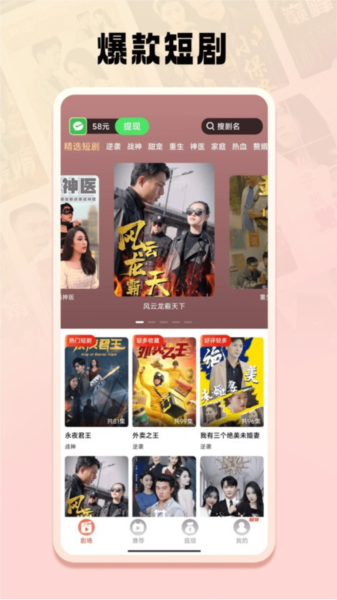 免费短剧之家软件收录了超级齐全的种类还有排行榜单为您呈现当下热门热剧不怕不会剧荒。