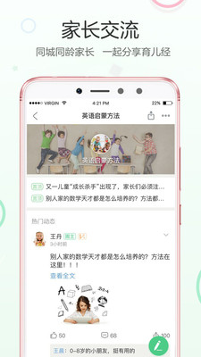 【亲子活动】:家长可以报名参加教育相关活动,参与其中包括公益性主题活动、儿童早教主题活动等等。