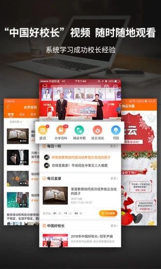校长云是国内首个以“教育信息化”为核心的专业机构解决方案。校长云是目前唯一以“互联网+大数据技术”为核心的机构解决方案提供商!校长云是面向全国中小学、幼儿园和小学等不同阶段的家长们使用的一款综合性教育管理系统。校长云致力于打造一个全面解决家庭教育困扰及家长与孩子之间的教育问题,通过线上线下结合的教学模式,为用户提供全方位的教育服务的平台。