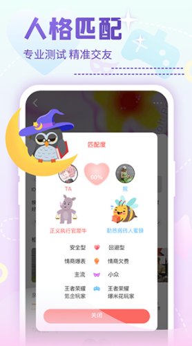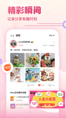 1、智能匹配技术为你快速筛选出符合你口味的内容推荐给你的好友或者是约会等等操作都是很简单的。2、通过文字以及语音的形式展示个人的信息十分的清晰明了,带给你更好的生活记录工具:图片视频声音都超级清晰。3、还可以开启定位查找附近附近的用户并加入其中以方便快捷的选择心仪的TA线下见面沟通。