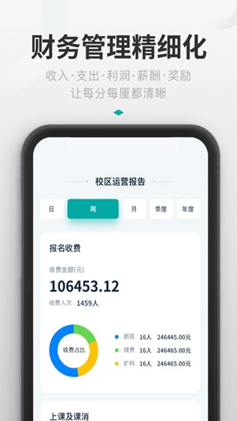 该应用涵盖了多种实用的功能模块和服务;包括报名申请、签到打卡、考试成绩查询、财务报销统计分析等等。