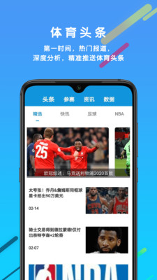 6、支持多种不同类型的功能设置搭配非常贴心的页面设计布局呈现给用户们很好的视觉效果展示给你最佳的使用感觉十分不错的一款体育阅读手机客户端软件。