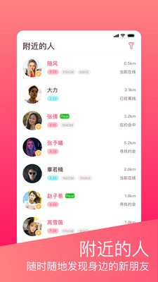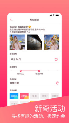 本APP是一个基于移动互联网的“社交”应用。该应用以“交朋友”、“恋爱”、“找对象”。用户可以在应用中找到志同道合的人或组织线下见面会,并支持实时消息回复,帮助用户快速脱单。