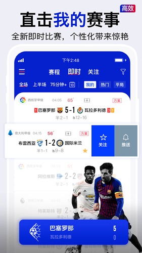 实况比分可以让球迷知晓个性化赛事的最新动态,在这里可以看到各种体育比赛信息和资讯内容。软件内置了众多功能板块能够满足大家日常看球需求!喜欢足球的朋友们不妨下载体验吧!