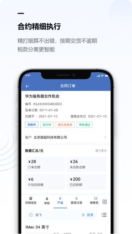 销售过程:通过应用程序记录销售订单信息并与销售人员交流沟通,以便随时掌握销售情况。