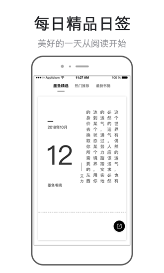 墨鱼书摘是一个简单好用的阅读摘记软件,可以记录你每天的书摘信息。在墨鱼书摘app上你可以添加自己喜欢的书籍进行分类管理哦,而且墨鱼书摘非常简单方便实用哦!