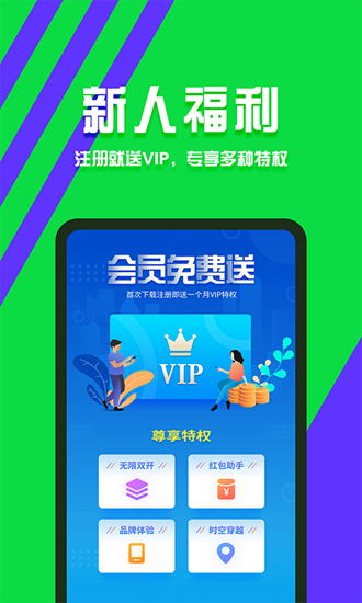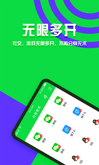 独创内存管理系统,微信多开、QQ多开、派陌多开、淘宝多开、闲鱼多开、拼多多多开、支付宝多开、京东多开等所有应用双开分身,解决了用户在工作生活两不误的情况下需求,降低分身成本;
