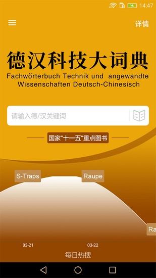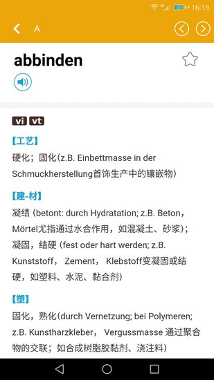 德语科技大词典app收录了海量的生字内容,支持多种查询方式。用户可以快速搜索查找相关的内容;软件还提供了详细的释义、例句等知识供大家参考学习。欢迎有需要的用户下载使用!