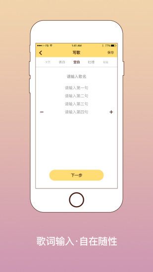 1、简洁明了的界面设计:我要写歌app的界面设计简洁明了,没有繁琐的设置步骤,确保每一个细节都符合你的要求。