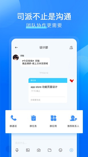 司派app是一个手机办公类应用,软件中用户可以在线管理自己的通讯录、好友关系等等信息内容等操作体验。还可以进行各种聊天消息的回复处理!对软件感兴趣的话不妨点击下载试一试吧!