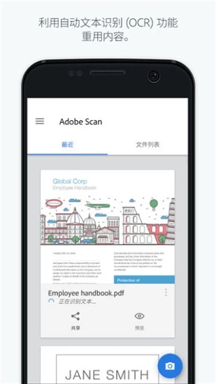 Scan是奥多比系统软件开发的文字识别工具 Scan是奥多比系统软件开发者是一个非常好用的手机扫描app,可以对你的图片进行快速的处理。支持在手机上将照片和文档转化成电子文档格式、表格等内容哦,让大家更加便捷地办公或学习。