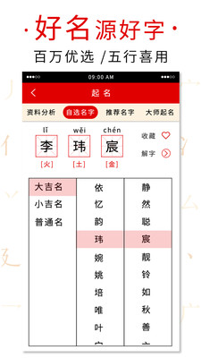 自选名字,输入生僻字即可找到对应的词库及解析;
