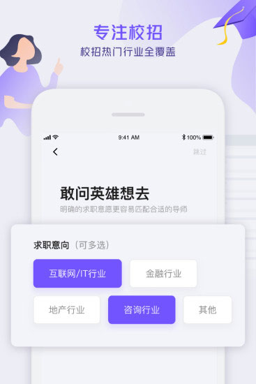 校招帮是杭州指日邦求职型app是一款专为杭州的学生们打造的手机找工作招聘软件。在这里汇聚了海量优质的工作岗位,用户可以根据自己的需求进行选择性投递简历和申请职位!有需要的用户快来绿色资源网下载吧!