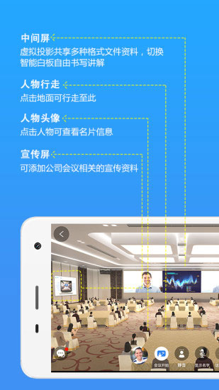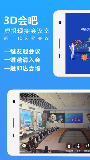 3D会吧是移动微世界网络有限公司创建的线上网络科技公司开发的一款在线虚拟会议软件,3d会吧是移动智能世界网络有限公司创建的线上网I系统平台是基于互联网技术打造而成的一款手机端远程会议应用,用户可以通过该软件与同事、同学等进行实时聊天交流,同时还可以在电脑上发起各种大型线上活动并邀请好友加入其中。