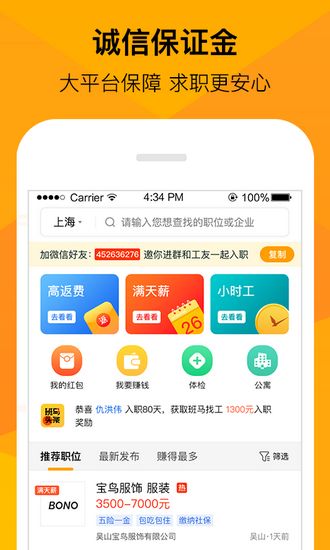 班拉松官方出品,100%人工审核,杜除黑中介和不正规岗位,让你轻松入职;
