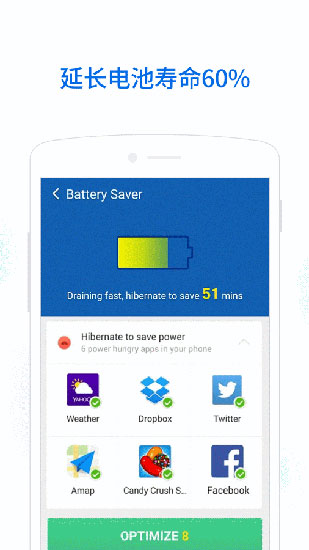 《全球首款安卓系统优化工具》是一款专业级Android系统优化软件,基于业界领先的一键式智能垃圾清理引擎,深耕移动互联网3亿余次,为用户提供一站式的安卓解决方案!