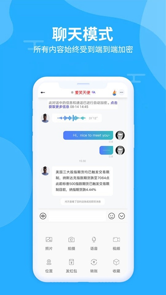 思语是一个全新的聊天APP,拥有非常强大的隐私保护模式让你更加安全放心的使用该应用程序而不必担心自己的隐秘性。