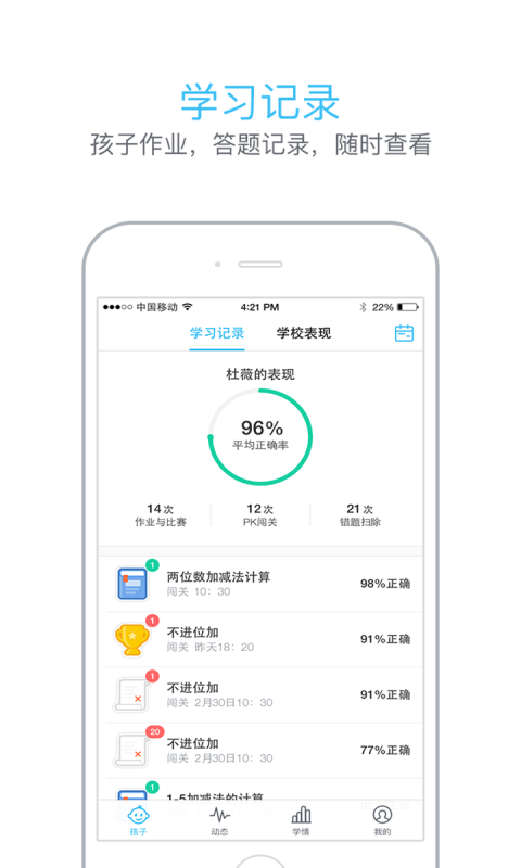 家庭作业:提交作业后生成家庭作业报告,实时关注孩子学习状态;
