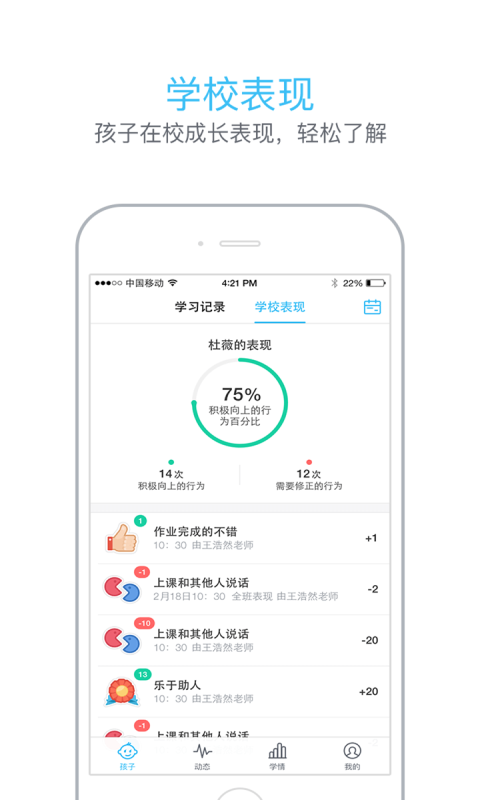 【家校共育】:家长通过“家校共治”实现家长与老师之间的沟通桥梁。家长可以在这里及时了解孩子的学习情况、班级信息等等。让家长随时掌握孩子学习动态,帮助家长更好地辅导孩子学知识,提高学习成绩,同时支持在线考试系统!