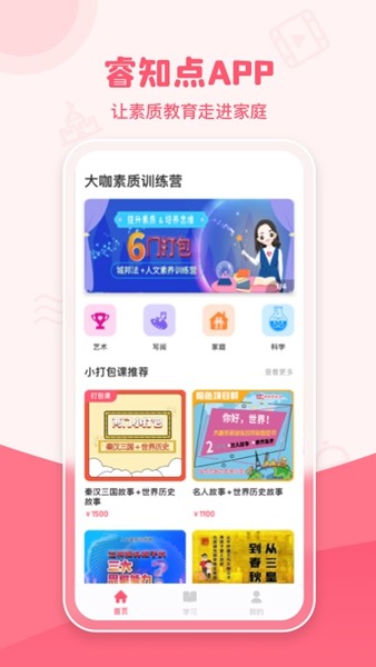 睿知点由海南郡唐美育有限公司推出的一款为用户打造的手机教育学习软件,这款软件主要为用户提供教育培训服务哦,在睿知点由新疆州镇区睿学点由app上可以随时随地的进行线上课程的选择和观看。