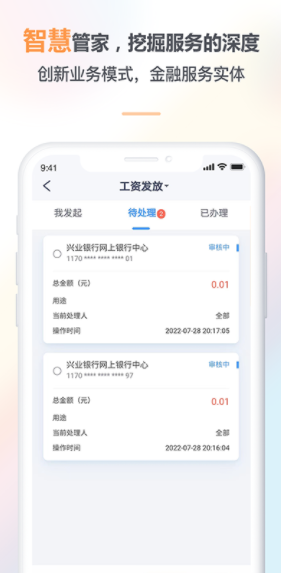 2、【智能决策】依托大数据分析及人工智能技术,兴业管家企业版APP能够根据您的需求自动生成个性化的财务报告或收益报表,助您做出明智的财务决策。