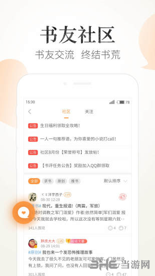 1、个性化推荐:依托大数据智能算法精准分析你的阅读喜好与历史记录等信息,为读者提供更个性化的阅读内容推送服务。2、听书畅读:解放双手,睡前,旅途让聆感陪伴你进入梦乡。3、海量的书库:来自互联网海淘书友们分享的各种类型的小说,满足用户的不同需求。4、实时更新:连载小说,更新提醒,第一时间获取最新章节,随心所欲阅读。多种翻页效果、仿真等多翻页效果、文字大小调节、变亮度调整、锁屏时间变快进、批量下载、进阶分组、目录书签、报错功能。6、支持多格式文本阅读,包括TXT,EPUB等。
