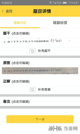 3.【文字识别】拍照上传错题后,便可得到对应结果;