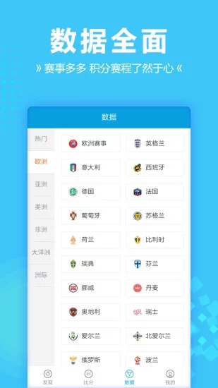 涵括全球范围内1000多个国家联赛、杯类足球、篮球等球队资料库和赛前瞻情报解读。