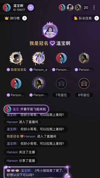1、汇聚大量高颜值声优,24小时在线陪伴,给你带来更多欢乐,找到更多好友组队开黑。