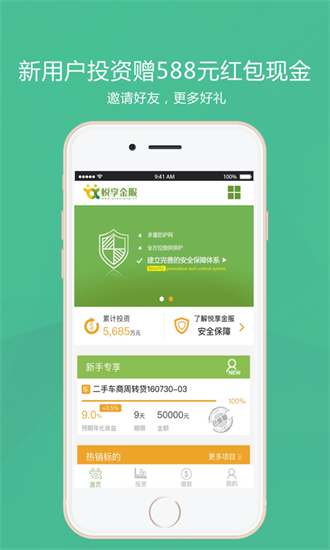 悦享金服app是一款专为用户打造的线上安全优质的金融理财软件,这里有着海量的理财产品提供给用户们选择进行投资交易。专业团队为你精选最新最热门的产品供用户挑选使用!感兴趣的用户快来西软件园下载吧~