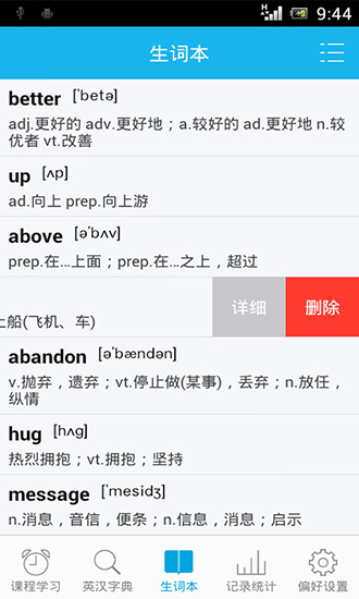 2、3种复习方式,将学习中的生词加入复习列表并按照顺序复诵,直到学会为止;