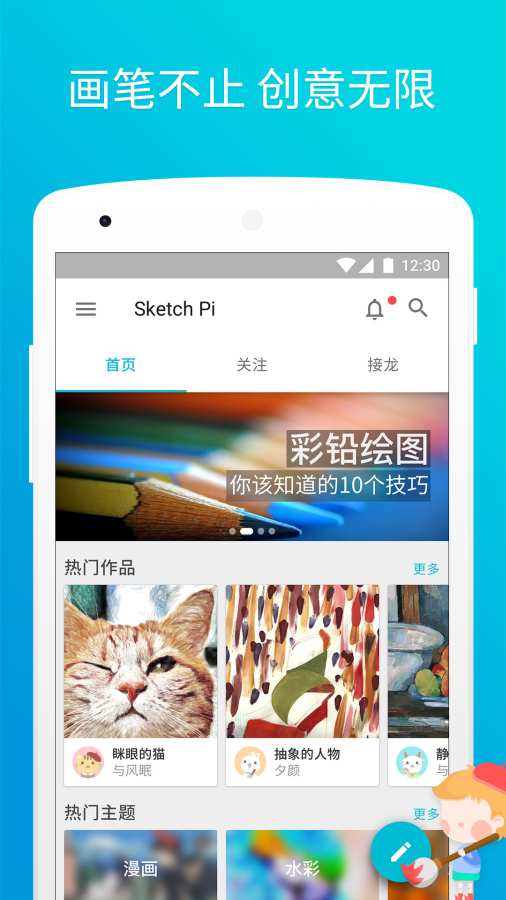 Pi是一款集画画接龙、手绘涂鸦、视频教学于一体的手绘社交平台 Sketch画app是专为手机端的画风创作打造的一款软件。软件内有海量的绘制工具,可以满足用户对画质、色彩的需求,并提供多种特效模板供使用。用户只需选择自己喜欢的风格和类型即可轻松完成各种作品内容制作!感兴趣的用户不要错过哦~