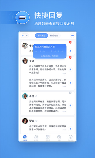 聊天宝是一款为移动用户提供的高效、安全、智能的网络社交产品,支持多种网络类型(包括文字、语音和视频)以及多端同步等操作方式。