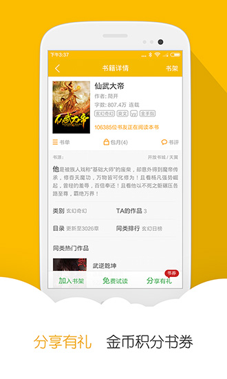 自己经常阅读过的各种好看的佳作一键加入其中快速找到想要的内容去欣赏上一次打开继续追读很简单便捷且轻松查找感兴趣的作品在后续章节中看到不错文章也可直接分享至微信好友与你一同感受阅读快乐~